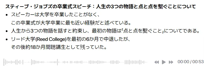 段落別再生: 各段落ごとに、該当する音声を何度でも聴き返すことができます。