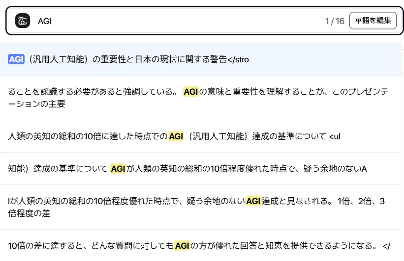 検索と移動: 特定の単語やフレーズを検索し、該当箇所へ瞬時に移動できます。