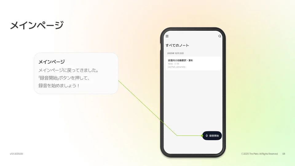 録音が終了すると、Tiroは自動的に内容を処理し、2つの形式でアウトプットを生成します。
