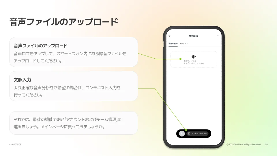 1.4. コア機能②:既存の音声ファイルをアップロードして分析