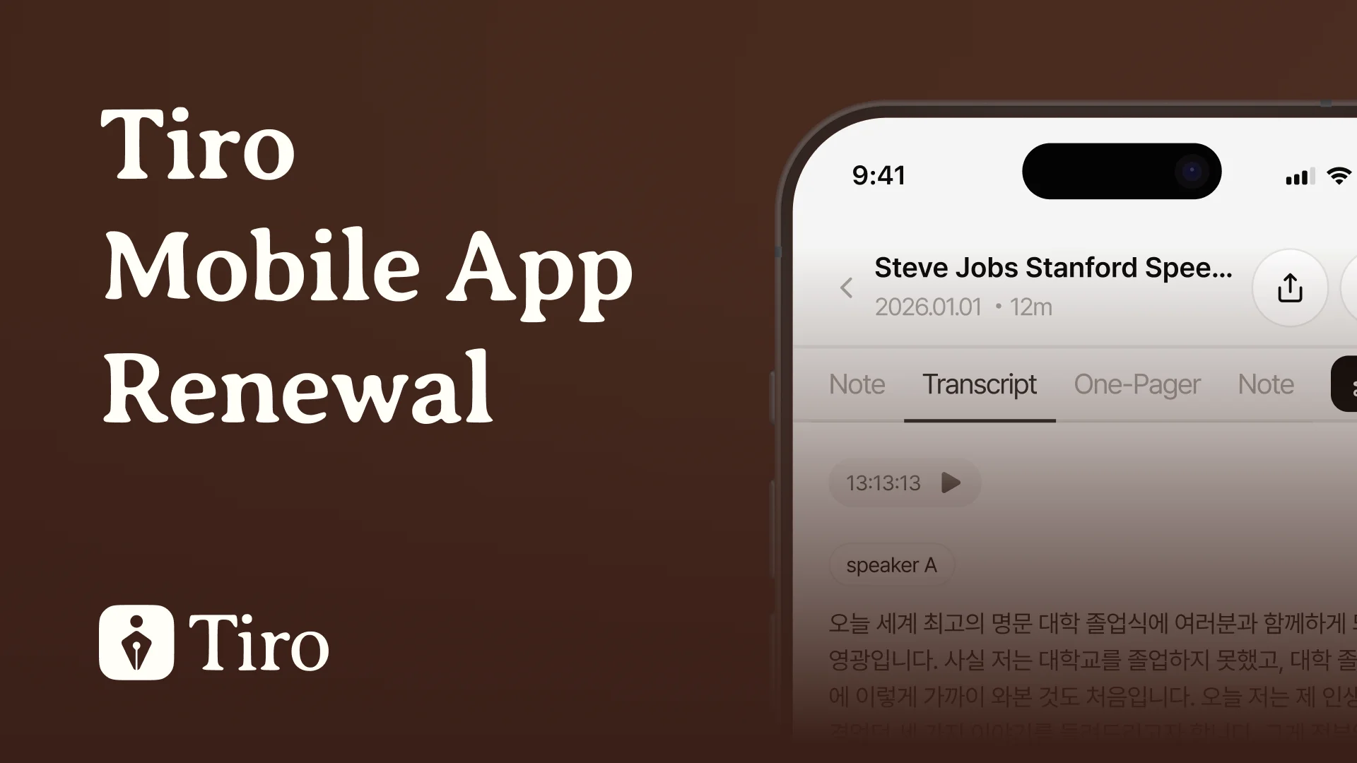 今回のブランディングが思想を視覚として表現したものであるとすれば、 モバイルアプリのリニューアルは、それを体験として届けるためのアップデートです。 「この会話を記録しておきたい」 そう感じたその瞬間に、迷わず使えること。 Tiroは、より自然に寄り添える存在を目指しました。
